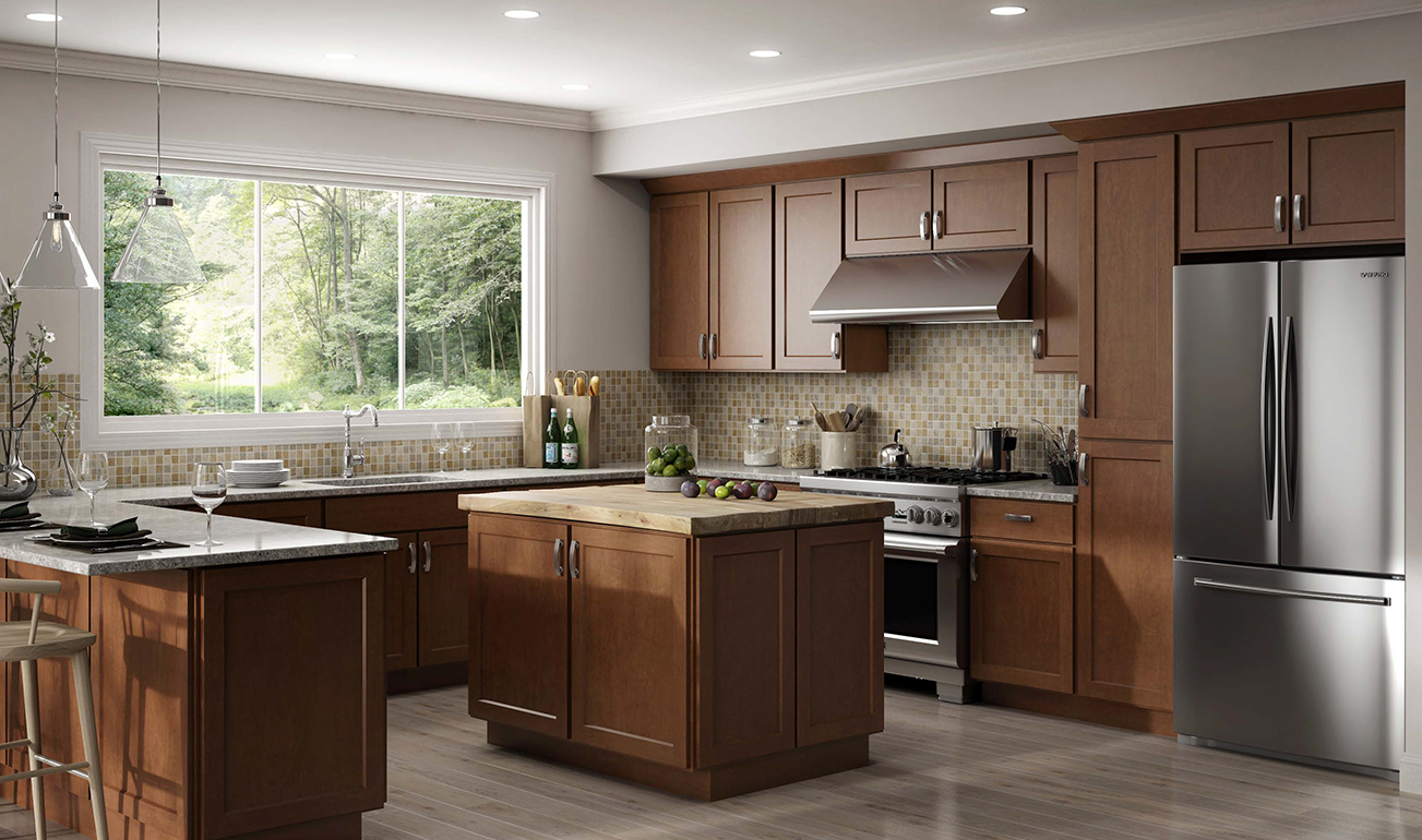 | Shelves — 3/4” thick, plywood; fully adjustable. (10” deep) | Toe kick — 4½“ Toe kick with 2½” “ inset on all standard base and vanity cabinets. |